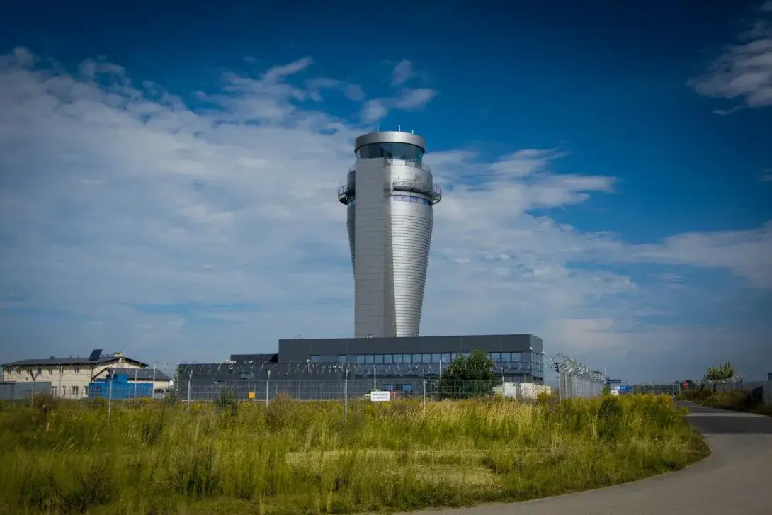 Wieża kontroli lotów na lotnisku Katowice-Pyrzowice